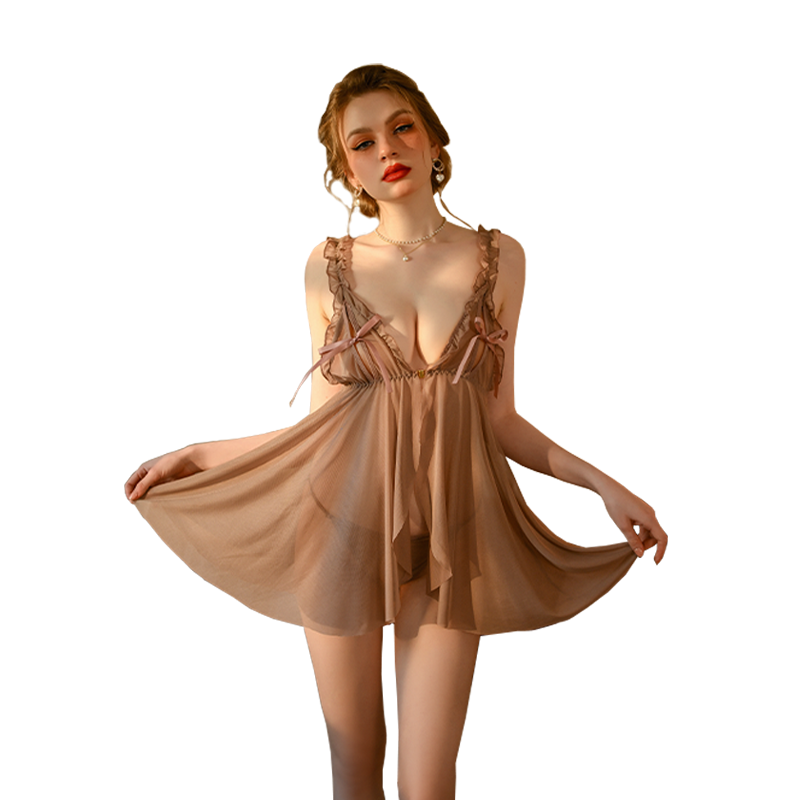 (情趣内衣)羞羞宝贝性感网纱透视睡裙(豆沙)